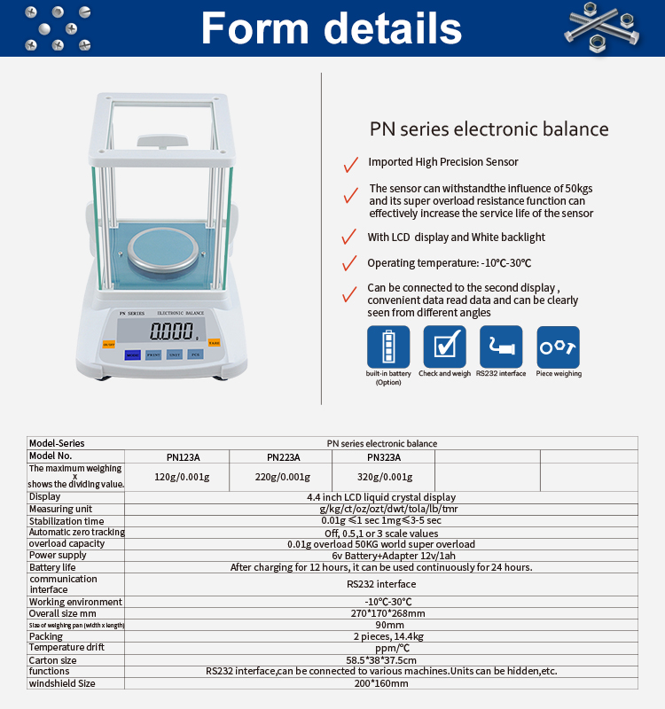 Capacity:120g/0.001g 220g/0.001g 320g/0.001g