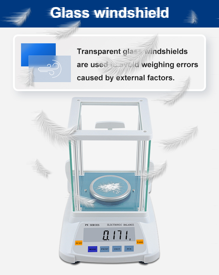 To maintain precision, the BDS-PN comes with a laboratory-grade glass windshield, effectively blocking airflow and preventing environmental interference. This is essential for maintaining stable 0.001g readings.